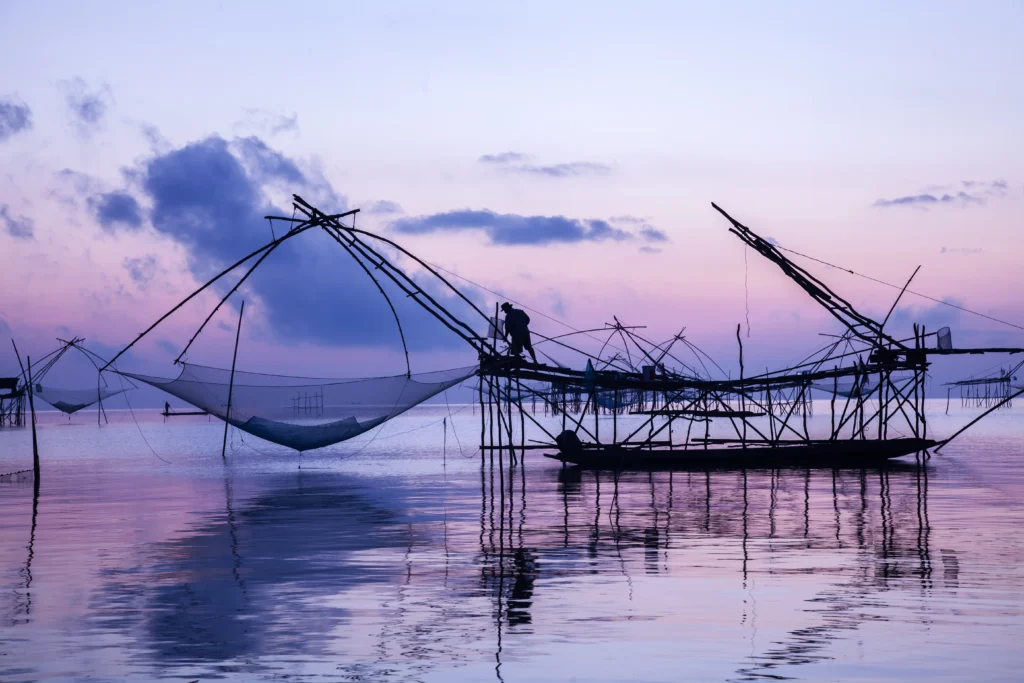 Unique cantilevered nets along Fort Kochi’s shore—witness a 600-year-old fishing tradition in action.